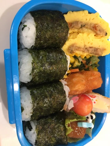 今日のお弁当は、俵おにぎりにしてみた( ♡´³`)σ見た目が可愛いから、たまに、この形にするんだけど、写真で撮っても何か可愛い‹‹⸜(*ˊᵕˋ* )⸝››♡♡笑