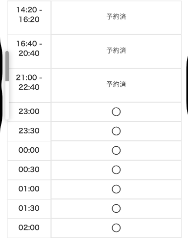 次回のご予約は23時~となります