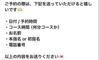 DMの時はこちらを書いて送ってもらえるとご予約がスムーズになります♡