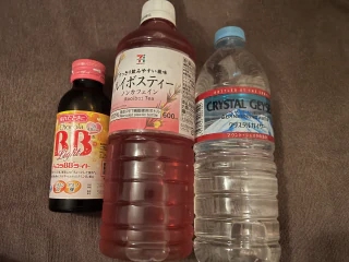 差し入れのルイボスティーとお水、チョコラBBもありがとね🫶