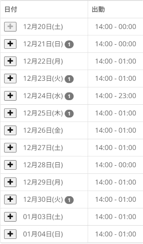 - 出勤予定