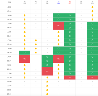 来週の空き枠