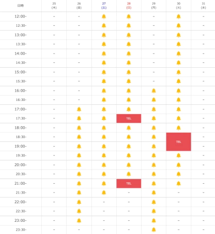 | 日 | 月 | 火 | 水 | 木 | 金 | 土 |