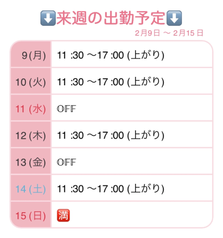 来週の予定が