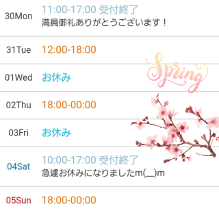 ☆出勤の変更、申し訳ございません☆