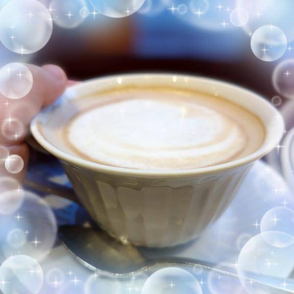 ラテを飲んで、ホッとひと息♪