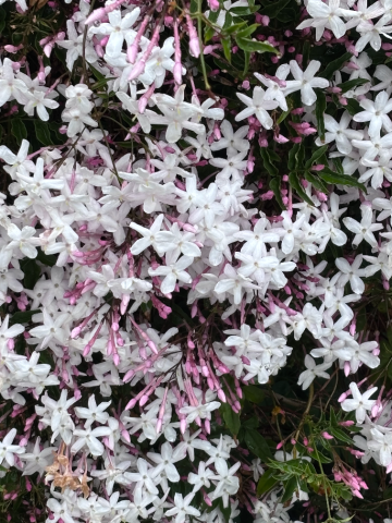 道ばたに咲いていたジャスミンの花が、風に乗ってふんわりと香ってきたんです。