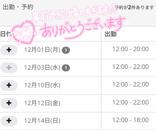 あずさの出勤がサイト上に登録されたら