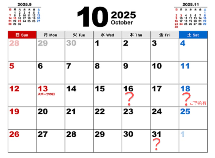 と考えながらチェックして下さっているお客様がいらっしゃるので、「お休みかも?」という日程をお知らせします🙂↕️