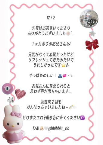 TOP ★秘密の出会いから始まる官能の 在籍スタッフ 本日出勤表(週間) 今すぐイケる娘 写メ日記 動画 リアルタイム速報 求人 料金システム 口コミ ランキング グラビア メルマガ 必読注意事項 テスト 求人マンガ ランキング アンダー割 岡山市/デリヘル RANKAN-ランカン- 営業時間:[受付9:15〜]10:00~翌2:00 定休日:不定休 電話番号:080-8237-8751 TOP ★秘密の出会いから始まる官能の 在籍スタッフ 本日出勤表(週間) 今すぐいける娘 写メ日記 動画 リアルタイム速報 求人 料金システム 口コミ ランキング グラビア メルマガ 必読注意事項 テスト 求人マンガ ランキング アンダー割 りあ この女の子をフォローする RANKAN-ランカン- 出勤予定 14:00~02:00 写メ 可愛い系 ロリ系 美少女系 美乳 敏感体質 プロフィール 写メ日記 口コミ 日付で見る 2026年02月 日 月 火 水 木 金 土 1 2 3 4 5 6 7 8 9 10 11 12 13 14 15 16 17 18 19 20 21 22 23 24 25 26 27 28 アルル305のリピさま ?? 25/12/02 18:11 女の子とお店をフォローします いいね! ? 女の子とお店をフォローします いいね! この日記をXに投稿する この女の子の口コミを書く ログインメールアドレス パスワード ログイン状態を保持する 無料会員登録 × 閉じる この女の子をフォローする 1つ新しい日記へ 1つ前の過去の日記へ りあの写メ日記一覧へ戻る 前の女の子 次の女の子 0人がこちらの女の子を検討中です ログインをしてもっとお得にネット予約 ログインID パスワード ログイン状態を保持する 無料会員登録 SNS会員様はこちらからログインしてください 閉じる × いいね!するにはログインが必要です いいね!すると女の子にあなたが いいねしたことが伝わります 女の子とお店を自動的にフォロー するのでアクセスが簡単になります ログイン 初めてのご利用ですか? 会員登録(無料)はこちら