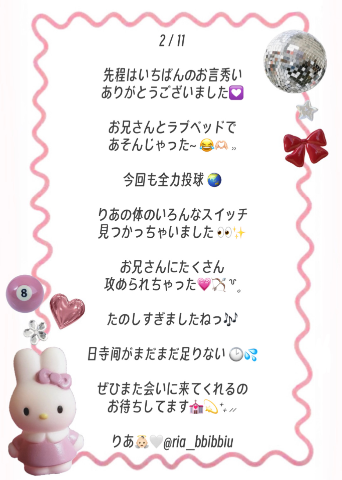 TOP ★秘密の出会いから始まる官能の 在籍スタッフ 本日出勤表(週間) 今すぐイケる娘 写メ日記 動画 リアルタイム速報 求人 料金システム 口コミ ランキング グラビア メルマガ 必読注意事項 テスト 求人マンガ ランキング アンダー割 岡山市/デリヘル RANKAN-ランカン- 営業時間:[受付9:15〜]10:00~翌2:00 定休日:不定休 電話番号:080-8237-8751 TOP ★秘密の出会いから始まる官能の 在籍スタッフ 本日出勤表(週間) 今すぐいける娘 写メ日記 動画 リアルタイム速報 求人 料金システム 口コミ ランキング グラビア メルマガ 必読注意事項 テスト 求人マンガ ランキング アンダー割 りあ この女の子をフォローする RANKAN-ランカン- 出勤予定 11:00~21:00 待機中 写メ 可愛い系 ロリ系 美少女系 美乳 敏感体質 プロフィール 写メ日記 口コミ 日付で見る 2026年02月 日 月 火 水 木 金 土 1 2 3 4 5 6 7 8 9 10 11 12 13 14 15 16 17 18 19 20 21 22 23 24 25 26 27 28 アラジン201のリピさま?? 26/02/11 14:49 女の子とお店をフォローします いいね! ? 女の子とお店をフォローします いいね! この日記をXに投稿する この女の子の口コミを書く ログインメールアドレス パスワード ログイン状態を保持する 無料会員登録 × 閉じる この女の子をフォローする 1つ新しい日記へ 1つ前の過去の日記へ りあの写メ日記一覧へ戻る 前の女の子 次の女の子 6人がこちらの女の子を検討中です ログインをしてもっとお得にネット予約 ログインID パスワード ログイン状態を保持する 無料会員登録 SNS会員様はこちらからログインしてください 閉じる × いいね!するにはログインが必要です いいね!すると女の子にあなたが いいねしたことが伝わります 女の子とお店を自動的にフォロー するのでアクセスが簡単になります ログイン 初めてのご利用ですか? 会員登録(無料)はこちら