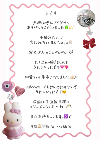 TOP ★秘密の出会いから始まる官能の 在籍スタッフ 本日出勤表(週間) 今すぐイケる娘 写メ日記 動画 リアルタイム速報 求人 料金システム 口コミ ランキング グラビア メルマガ 必読注意事項 テスト 求人マンガ ランキング アンダー割 岡山市/デリヘル RANKAN-ランカン- 営業時間:[受付9:15〜]10:00~翌2:00 定休日:不定休 電話番号:080-8237-8751 TOP ★秘密の出会いから始まる官能の 在籍スタッフ 本日出勤表(週間) 今すぐいける娘 写メ日記 動画 リアルタイム速報 求人 料金システム 口コミ ランキング グラビア メルマガ 必読注意事項 テスト 求人マンガ ランキング アンダー割 りあ この女の子をフォローする RANKAN-ランカン- 出勤予定 11:00~02:00 写メ 可愛い系 ロリ系 美少女系 美乳 敏感体質 プロフィール 写メ日記 口コミ 日付で見る 2026年03月 日 月 火 水 木 金 土 1 2 3 4 5 6 7 8 9 10 11 12 13 14 15 16 17 18 19 20 21 22 23 24 25 26 27 28 29 30 31 MAN225のお兄さま?? 26/03/04 19:45 女の子とお店をフォローします いいね! ? 女の子とお店をフォローします いいね! この日記をXに投稿する この女の子の口コミを書く ログインメールアドレス パスワード ログイン状態を保持する 無料会員登録 × 閉じる この女の子をフォローする 1つ新しい日記へ 1つ前の過去の日記へ りあの写メ日記一覧へ戻る 前の女の子 次の女の子 4人がこちらの女の子を検討中です ログインをしてもっとお得にネット予約 ログインID パスワード ログイン状態を保持する 無料会員登録 SNS会員様はこちらからログインしてください 閉じる × いいね!するにはログインが必要です いいね!すると女の子にあなたが いいねしたことが伝わります 女の子とお店を自動的にフォロー するのでアクセスが簡単になります ログイン 初めてのご利用ですか? 会員登録(無料)はこちら
