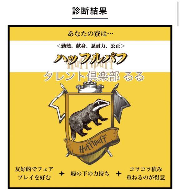 診断やってみたらるるはハッフルパフだった?