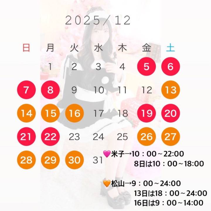 他の日はちょこちょこ空いてるので連絡待ってます🫶🎄🎁🎅🌟