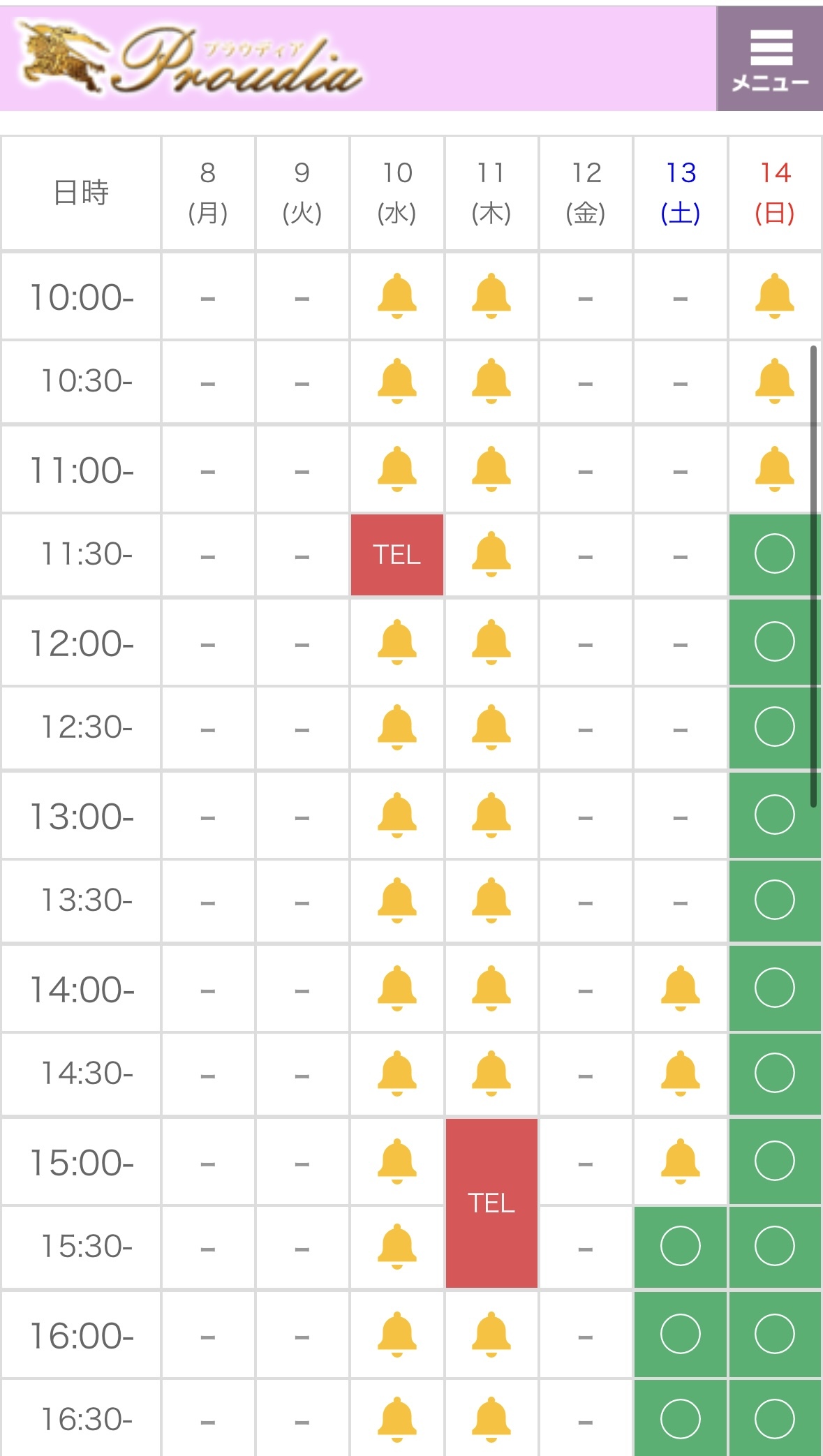 14日以降はまだ空きがある状態💭