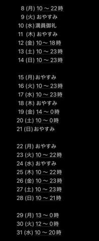 営業時間:朝9時~翌朝7時 定休日:☆年末年始☆