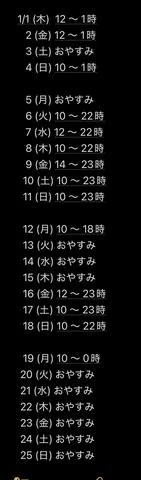 営業時間:朝9時~翌朝7時 定休日:☆年末年始☆