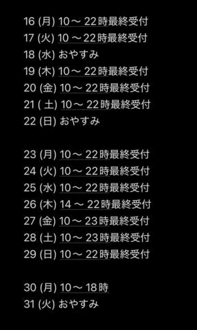 営業時間:朝9時~翌朝7時 定休日:☆年末年始☆
