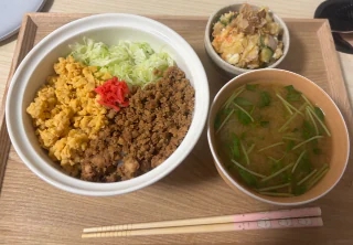 昨日は校長先生が3色丼作ってくれたの!