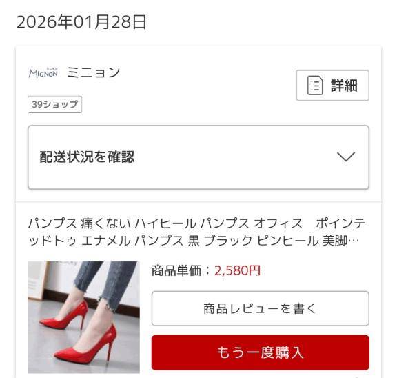 1/28に発注した赤い靴が今頃届くらしい、、、