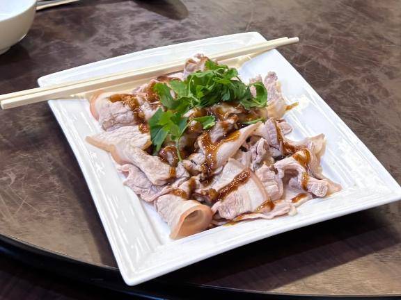 この写真は、パクチーの豚肉料理です?