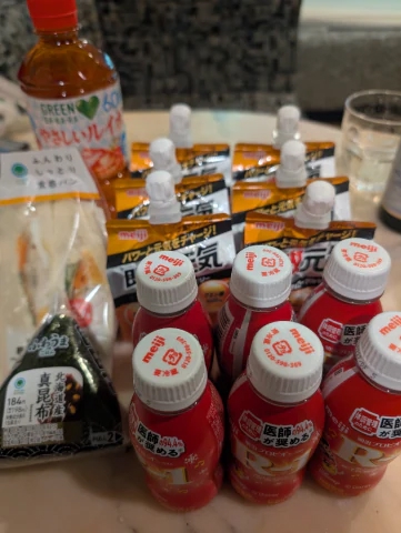 いっぱい差し入れありがとう(*^^*)🎶ありがたく飲んでる(笑)🥪🍙も助かったよ(^_-)-☆