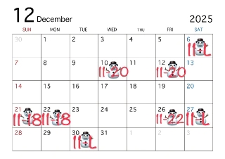| 日 | 月 | 火 | 水 | 木 | 金 | 土 |