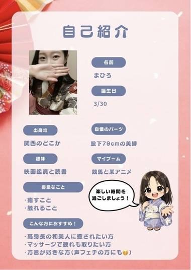 このお仕事では当たり前かもしれませんが、まひろにしか出来ない癒しと触れ方にこだわっています🫶