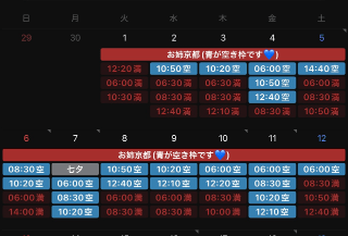 ※表記している空き枠のお時間は大体の目安です。