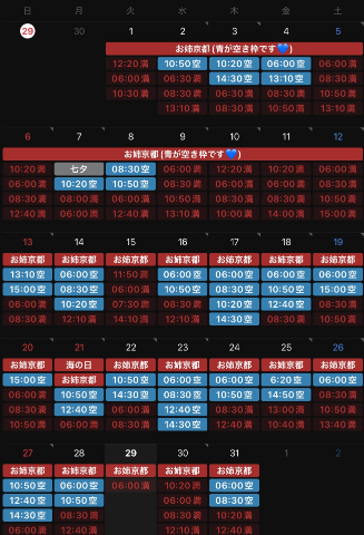 ※表記している空き枠のお時間は大体の目安です。