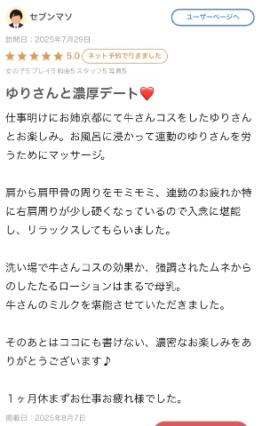 口コミを拝見して、肩や背中を丁寧に揉んでくださったことを思い出し、心までほぐされるような気持ちになりました☺️