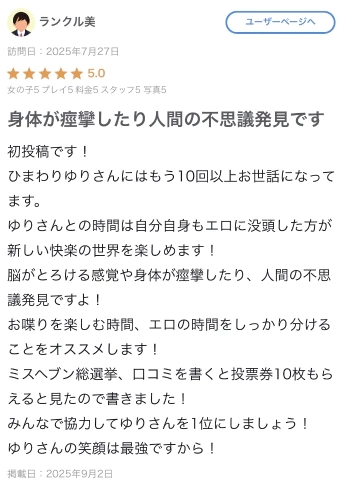 さらに、ミスヘブン総選挙投票のために口コミを書いてくださったこと、とっても嬉しいです🥰💋