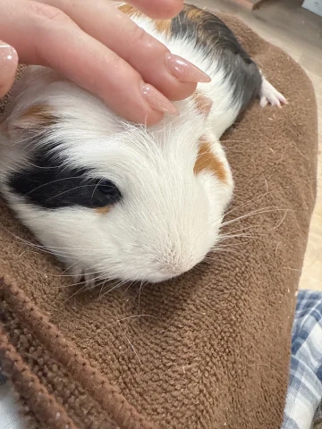 お友達のお膝に来たモルモットが