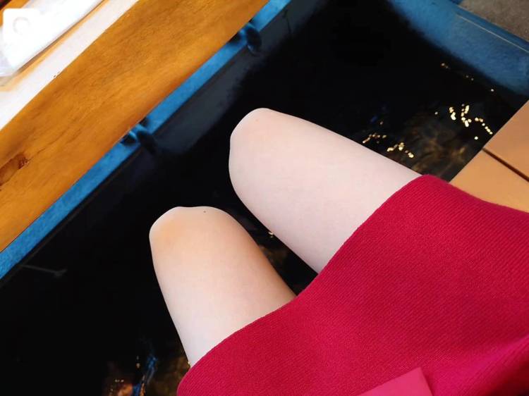 足湯しながらスイーツを食べ