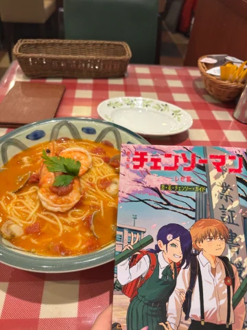 今日食べたパスタと来場特典の冊子🍝