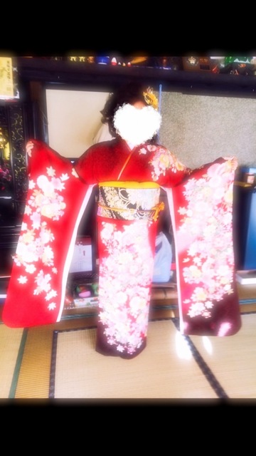 成人式で着た着物をのせて👘