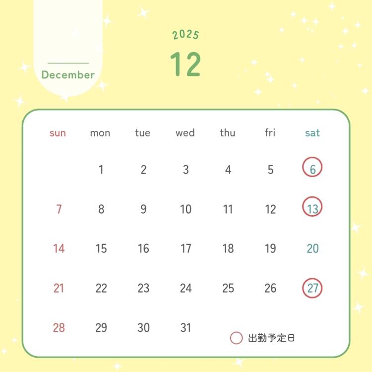 12月後半の出勤予定が