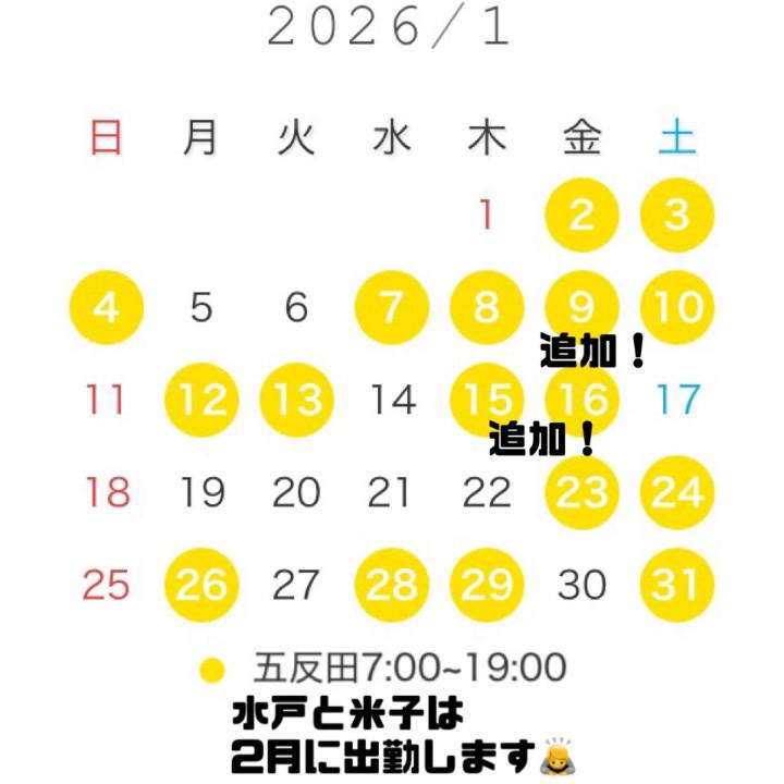 1月は上旬の出勤多めです😊✨