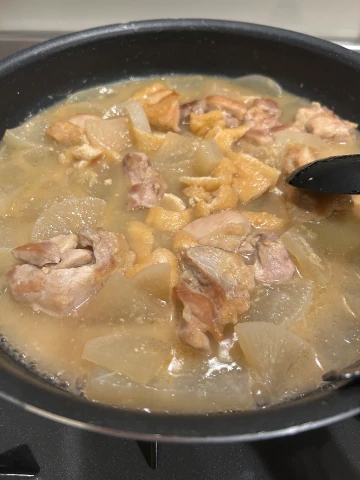 見えづらいけど大根ととりももの味噌生姜煮です🍲