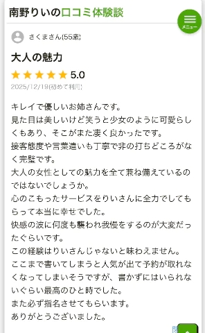 心のこもったサービスをりいさんに全力でしてもらって本当に幸せでした。
