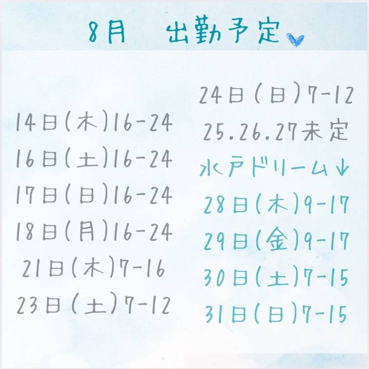 8月の池袋バイオレンス出勤予定🌻