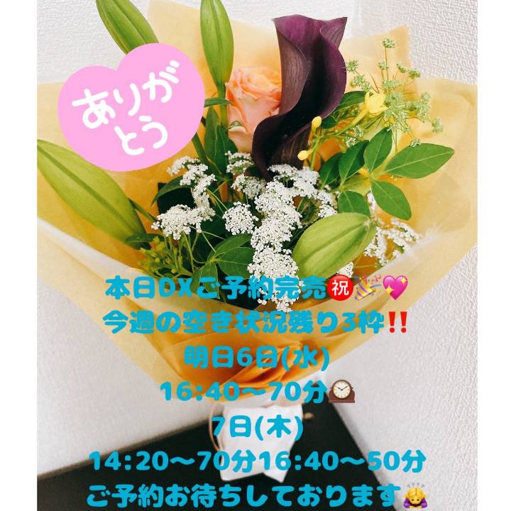 7日(木)はキャンセルが出て、14:20〜70分と16:40〜50分ご案内可能です🎀