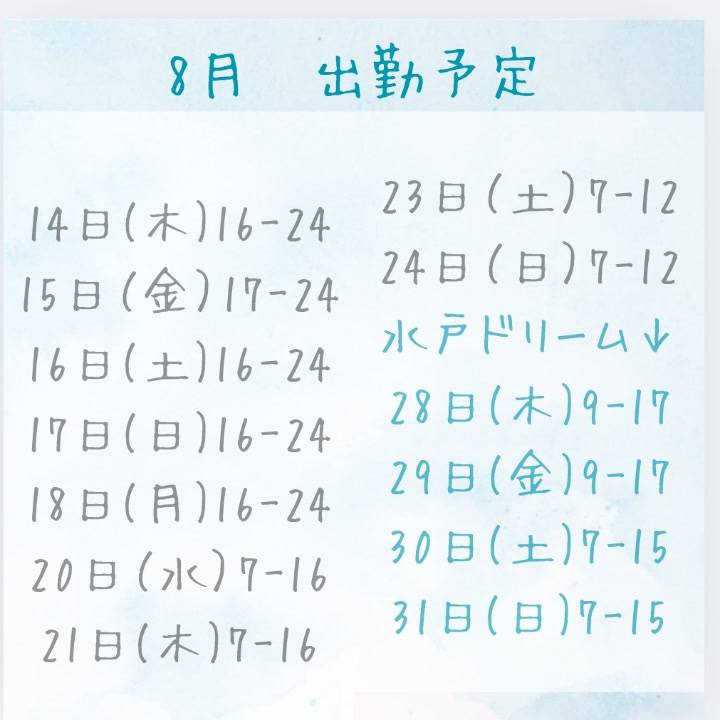 8月シフト追加しました