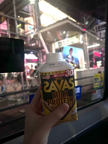 (お腹空いたけど夜食べると太りやすいし、最近太った気がするから、我慢してプロテイン。。。褒めて😭)