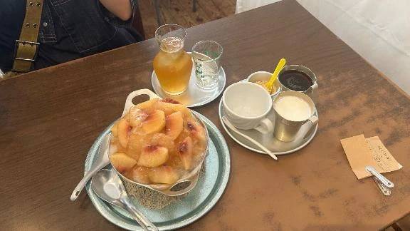 写真は何も関係のない写真だけど、はるがずっと食べたかった念願の桃のかき氷だよ🍑笑