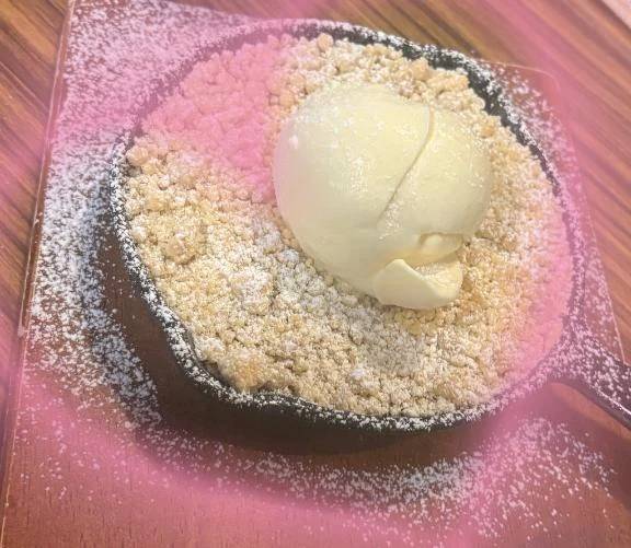 不思議な形のアップルパイですが。。アイスも🍨乗ってて。。ザクザクのパイ生地があって。。。キャラメルも入ってて。。。