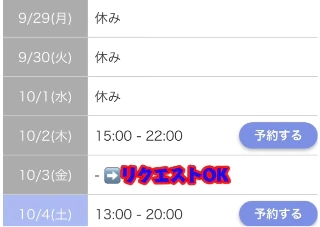 10/2(木)15:00-22:00(最終受付)