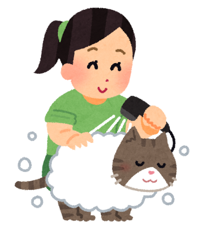 猫たちと共にシャワーへ