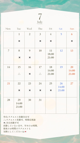 【7月の出勤予定】