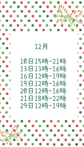 諸事情により急遽出勤日と時間に変更がでる場合があります。